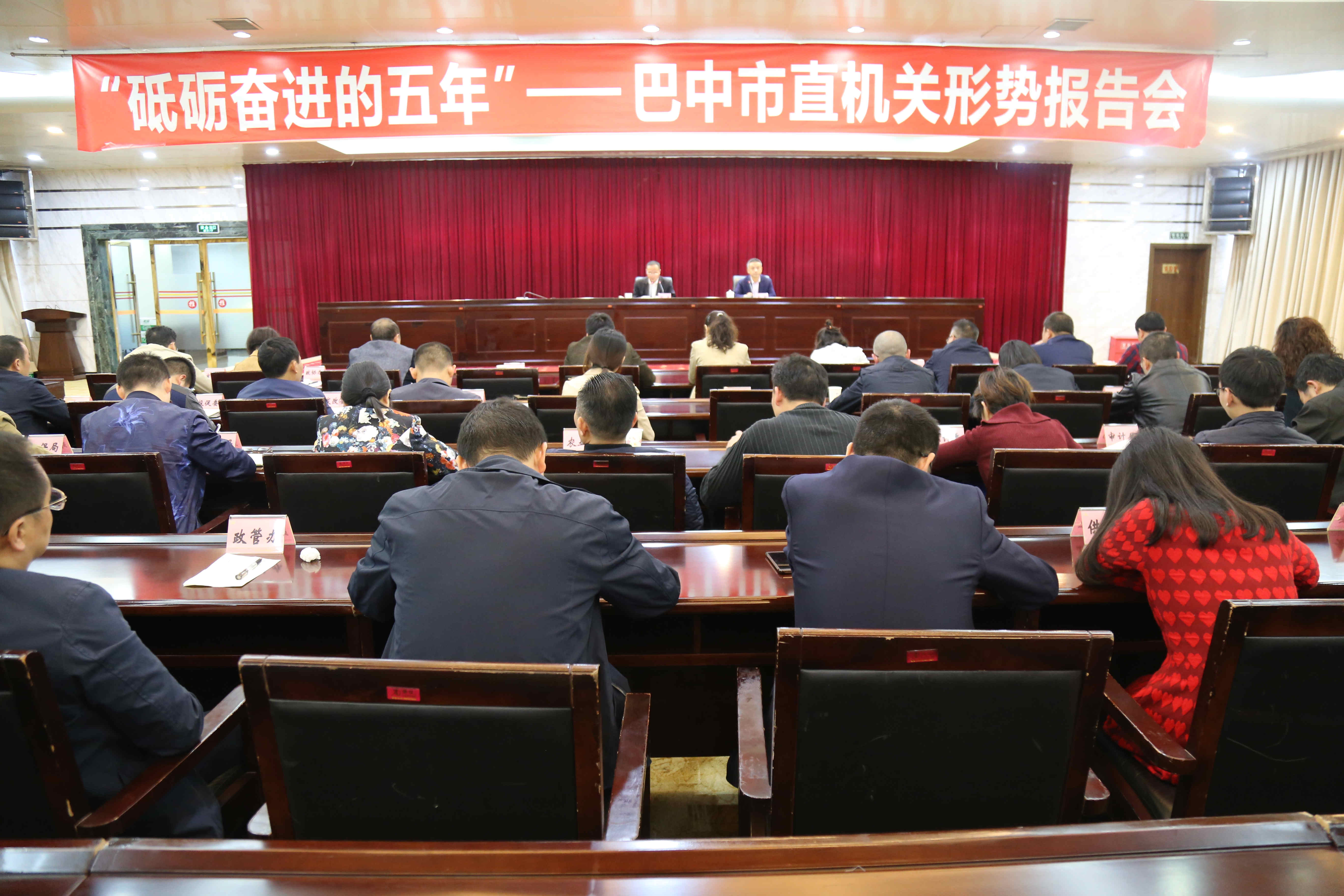 为迎接党的十九大胜利召开,深入推进“两学一做”学习教育常态化制度化,教育引领市直机关广大党员干部坚定理想信念,牢固树立“四个意识”、增强“四个自信”,带头做合格党员、当干事先锋,10月16日,市直工委举办“砥砺奋进的五年”形势报告会,邀请市以工代赈办公室主任郎森同志作报告,市直各部门(单位)机关党委(直属总支、支部)书记、党务干部100余人参加形势报告会。