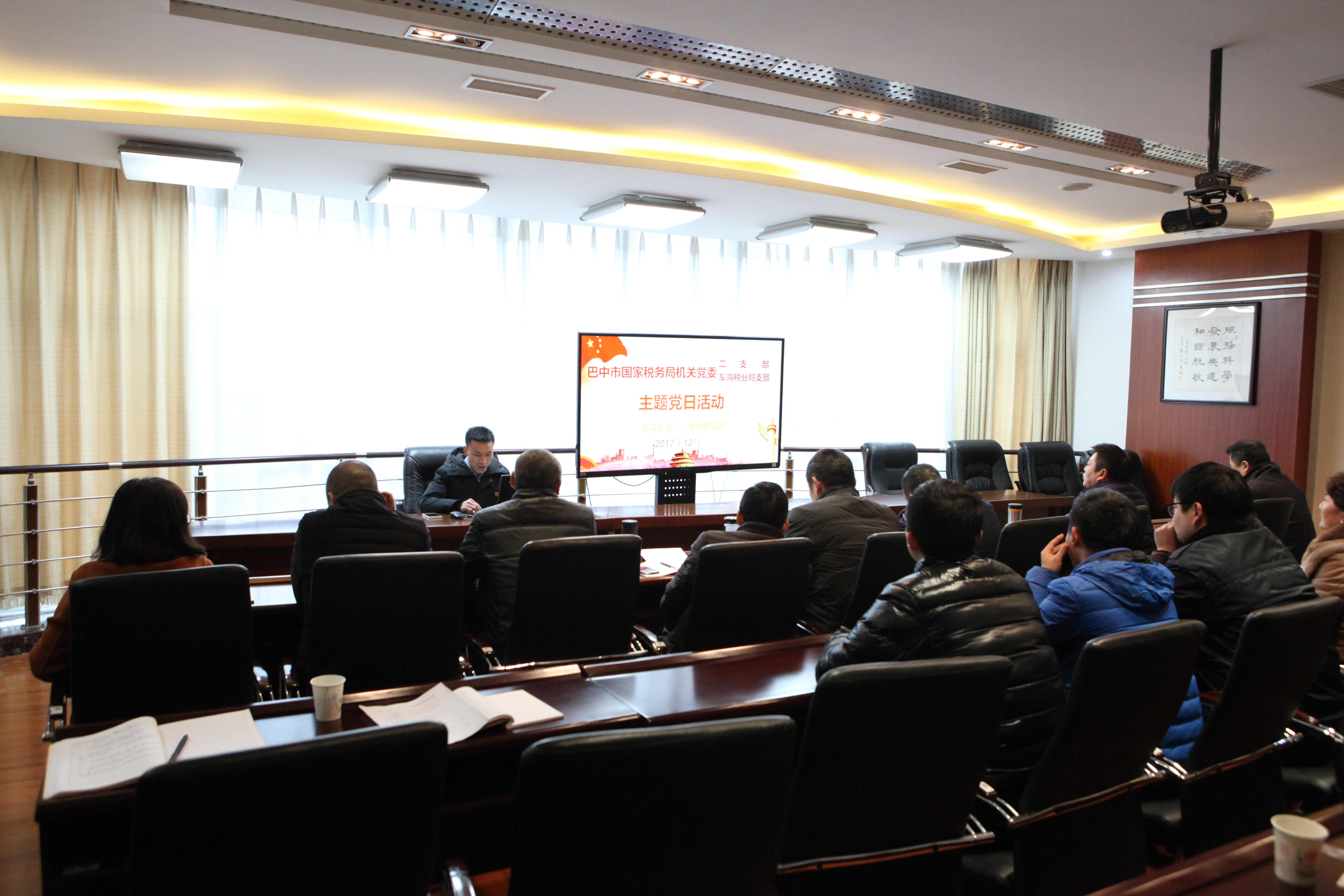活动以“重温入党誓词 牢记入党初心”为主题,开展了重温入党誓词、按期交纳党费、集体诵读党章、组织集中学习《党章》、党员“微党课”活动,进一步学习宣传贯彻党的十九大精神,促进党员干部不忘初心、牢记使命。会上,市国税局两个支部还组织学习了《中共巴中市委办公室关于学习宣传贯彻市委四届五次全会精神的通知》,对市委四届五次全会精神进行了传达。与会党员同志纷纷表示,四届五次全会精神的召开鼓舞了川陕革命老区人民打赢脱贫攻坚、交通建设、区域经济、特色农业、全域旅游、城乡提升等硬仗的决心和信心,为来年做好国税机关党的建设、税收业务本职工作加足了油、鼓足了劲。