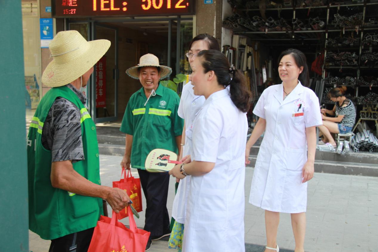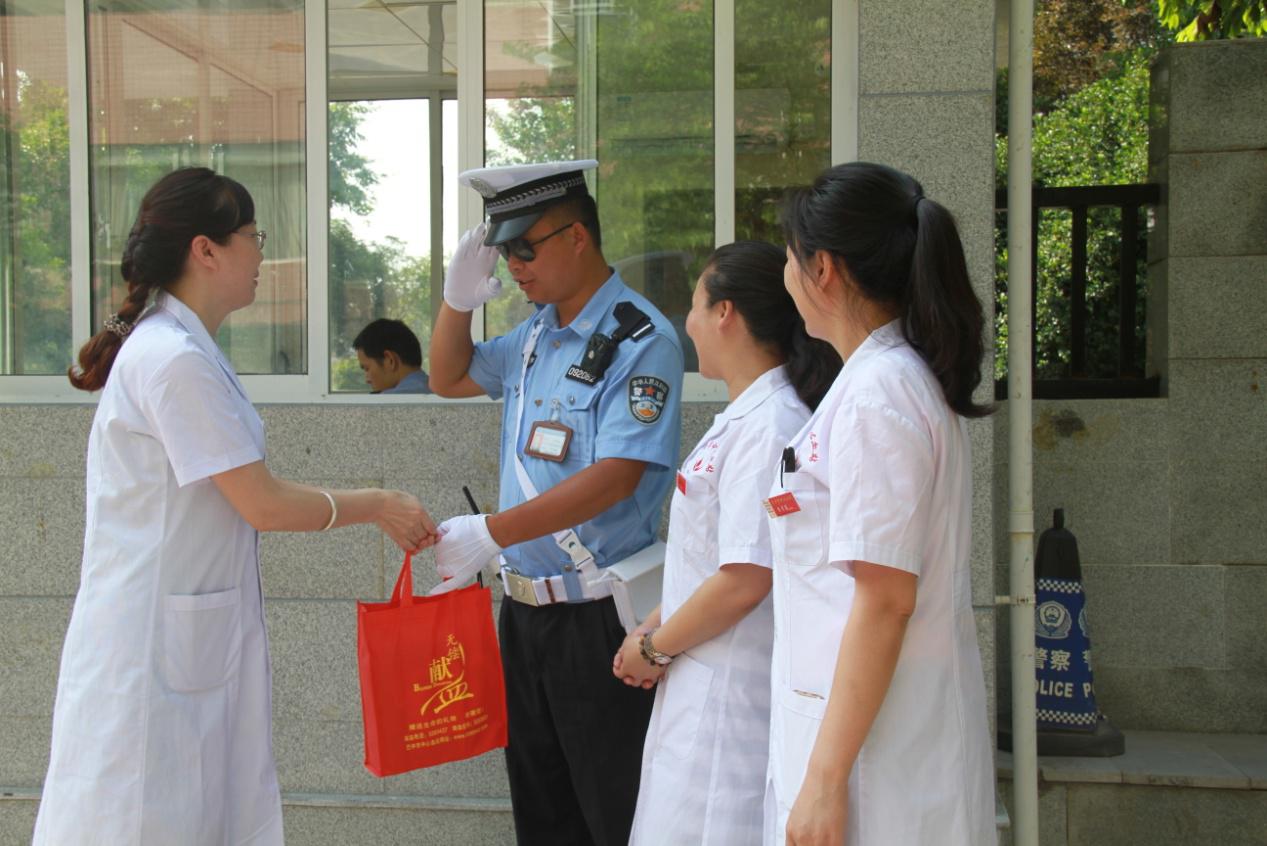 二是市中心血站的党员干部带着50多个爱心清凉包裹(矿泉水、毛巾、防暑降暑药物等)到市区多个路口和沿街道路,为烈日下执勤的交警和坚守岗位的环卫、园林工人送水送凉,感谢他们为维护城市清洁、城市绿化和良好的交通秩序所付出的辛勤劳动、所展现出的良好形象。